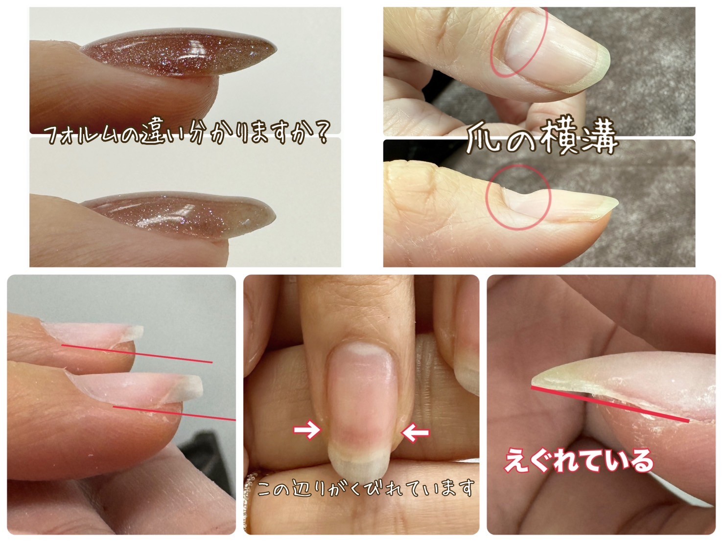 - 爪タイプ別のフォルム形成(そり爪・歪みのある爪)